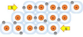 금속 결합은 외부 물리적인 힘에 대해 전성와 연성의 특성이 있는데 외부의 힘으로 물리적 충격을 주면 자유전자로 부셔지지 않고 변형이 된다.