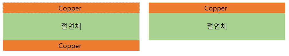 Copper clad laminate (CCL)는 PCB를 가장 기초적인 원자재입니다. CCL의 구조는 중앙에 유리섬유 (FR4), 종이 등의 절연체에 단면 또는 양면에 Copper clad를 부착한 구조 입니다.